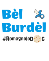 Body con scritta in dialetto romagnolo 'Bel Bambino'.